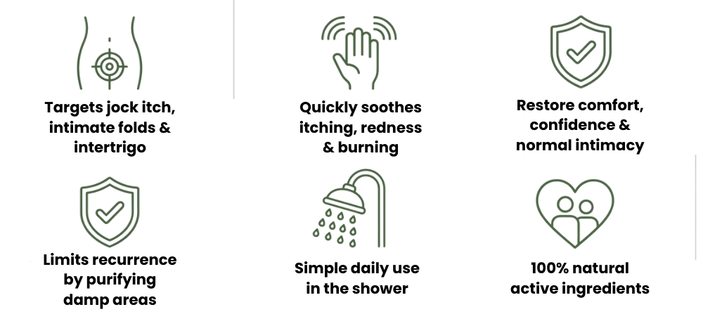 Yes. Our soap is formulated for sensitive, moisture-prone areas susceptible to fungal infections (groin, inner thighs, skin folds, under the breasts...). Used daily, it helps purify the skin environment, limit fungal growth, and soothe itching, without irritating the skin or leaving a greasy film.